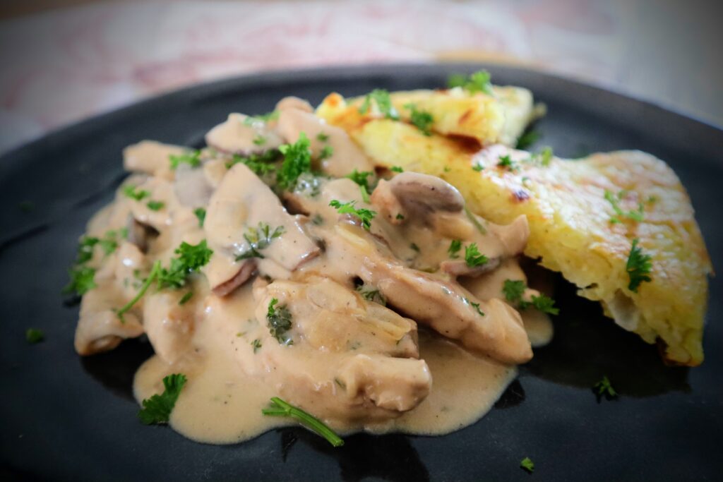 Traditioneel wordt het geserveerd met ‘Rösti’. Een traditioneel Zwitsers aardappelgerecht. Daarvan staat ook een recept op deze website. Wil je dit ook maken om bij de Geschnetzeltes te serveren? Vind het recept dan hier.
